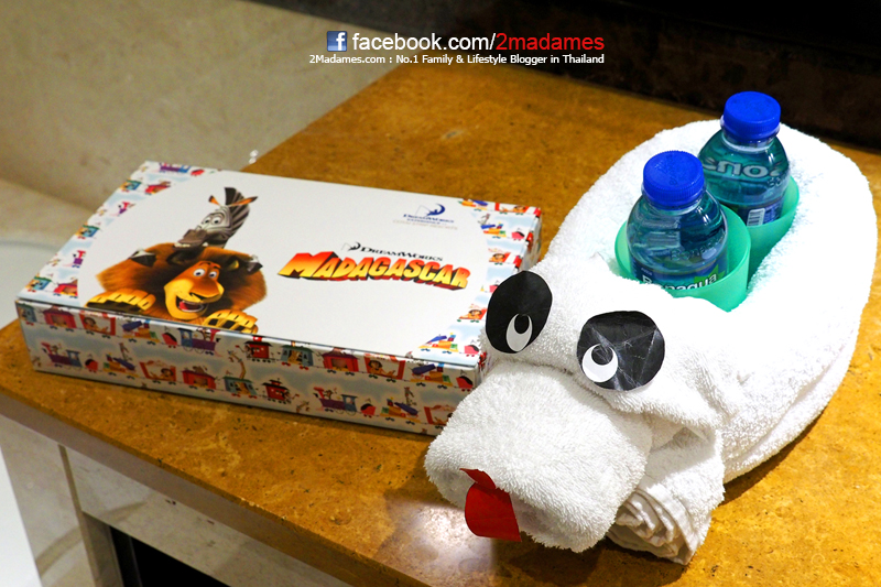 พวกเครื่องใช้ Amenities ใส่กล่องลายการ์ตูนมาอย่างสวยงาม ผ้าเช็ดตัวปั้นเป็นรูปน้องหมา