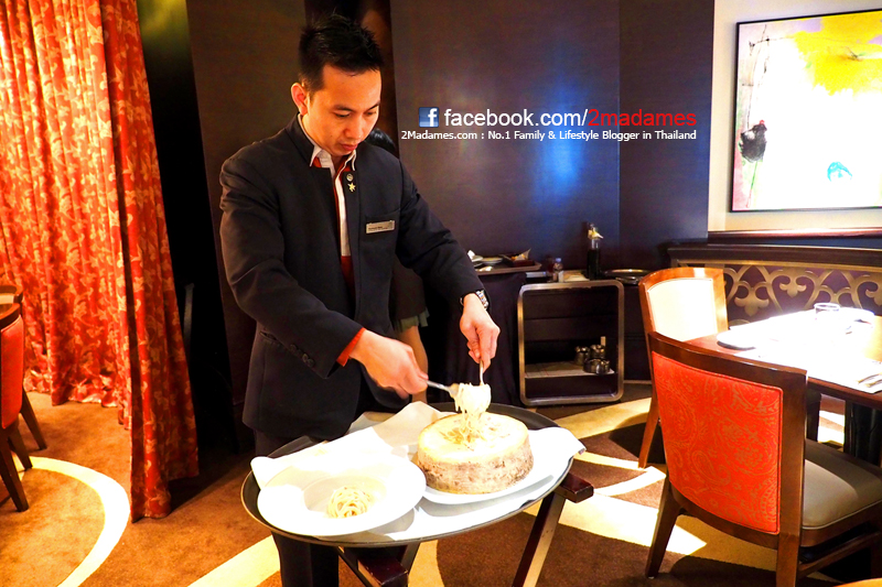 เราสั่งสปาเก็ตตี้คาโบนาร่าไปให้กับเด็กๆ มีการมันคลุกเนยโชว์ที่ริมโต๊ะเลย