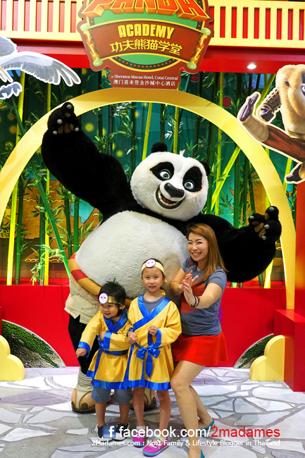 กิจกรรมแรกของทริปมาเก๊า เราพาเด็กๆมาฝึกวิทยายุทธ์กับอาจารย์แพนด้าอาโปที่ Kung Fu Panda Academy โรงแรม Sheraton Macao Hotel, Cotai Central