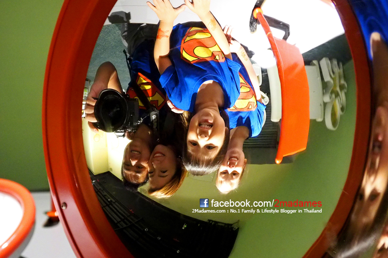 อีกด้านมีกระจกเว้า กระจกนูน ให้เด็กๆไปลองส่องดูภาพด้วย
