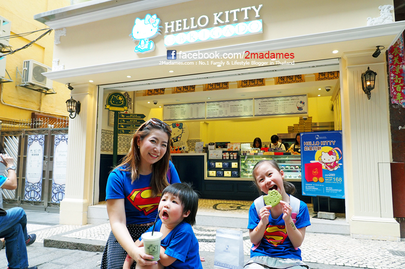 เป้าหมายถัดไป คือร้าน Hello Kitty Obrigado ที่เพิ่งเปิดใหม่ครับ ร้านนี้เป็นร้านเล็กๆ ภายในร้านจะเน้นขายเครื่องดื่มร้อนเย็น มาการอง คุกกี้ และแน่นอนมีทาร์ตไข่ขายด้วยครับ ช่วงนี้ใกล้เทศกาลขนมไหว้พระจันทร์ก็มีไส้คัสตาร์ดขายกับเค้าด้วยนะ พิกัดการเดินทางมาก็ไม่ยากครับ เดินเลยร้าน Wong Chi Kei ที่พวกเราทานข้าวกลางวันสักเล็กน้อย แล้วร้าน Hello Kitty Obrigado จะอยู่ในตรอกทางด้านขวามือจ้า