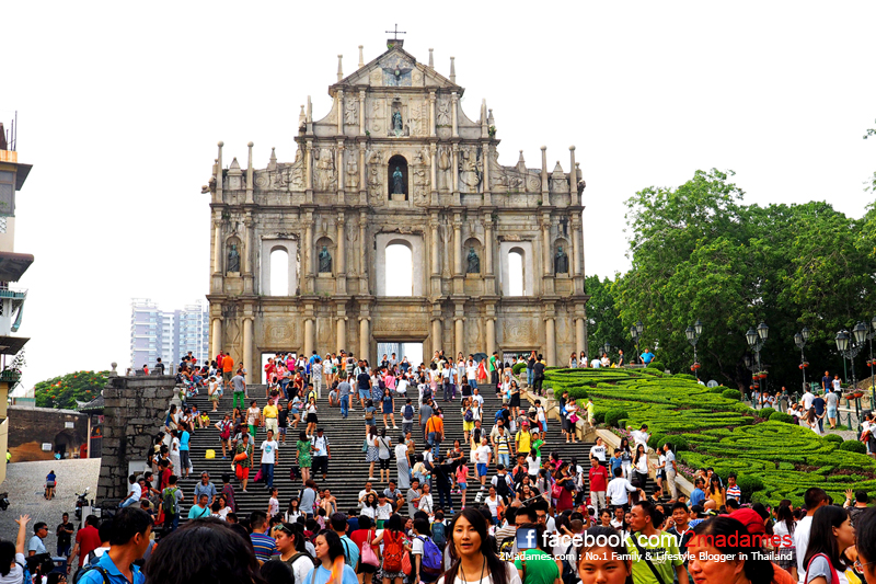 เดินจาก Senado Sqaure ประมาณ 5 นาที ก็ถึงกับสัญลักษณ์ของมาเก๊าอย่างซากประตูของวิหารเซนต์ปอล The ruins of St. paul’s cathedral