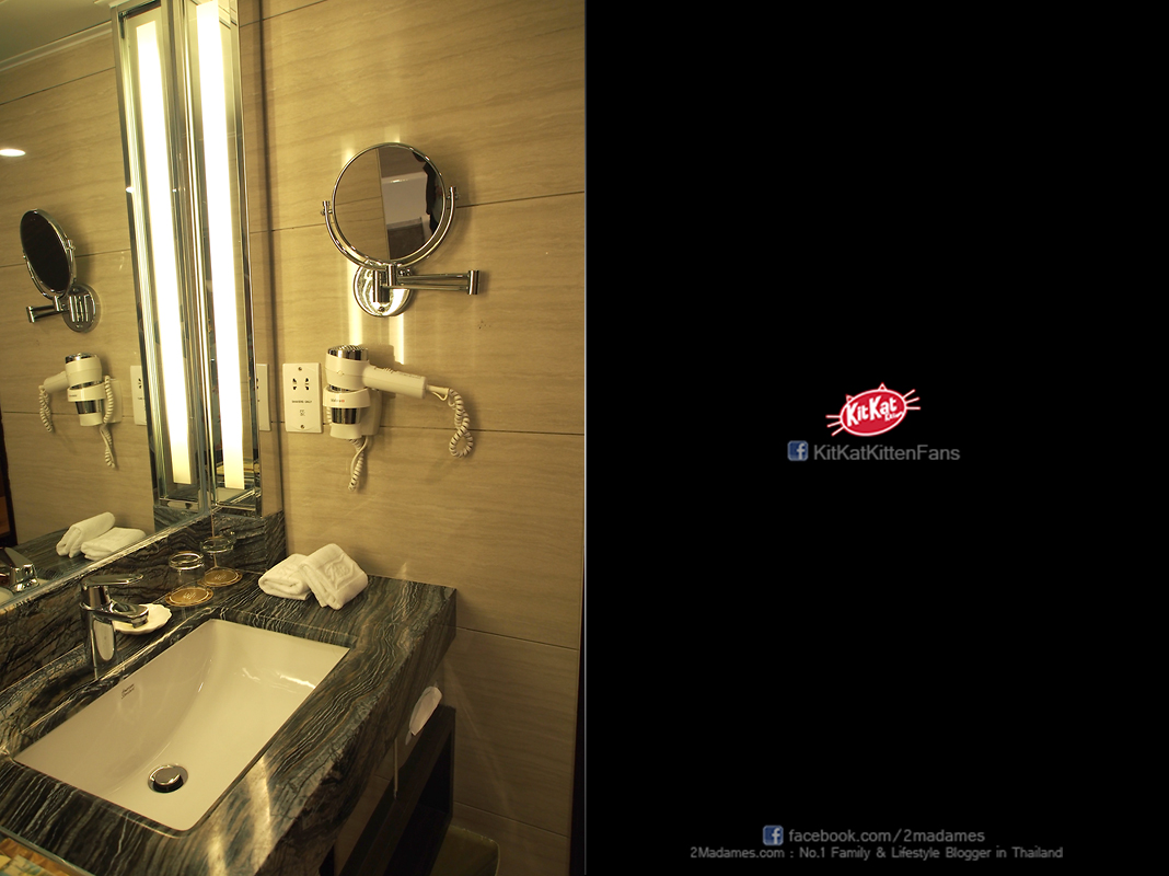 ห้องน้ำก็กว้างเช่นเดียวกันค่ะ มีข้าวของเครื่องใช้ให้ครบ ทั้งไดร์ กระจกข้าง และ Amenity