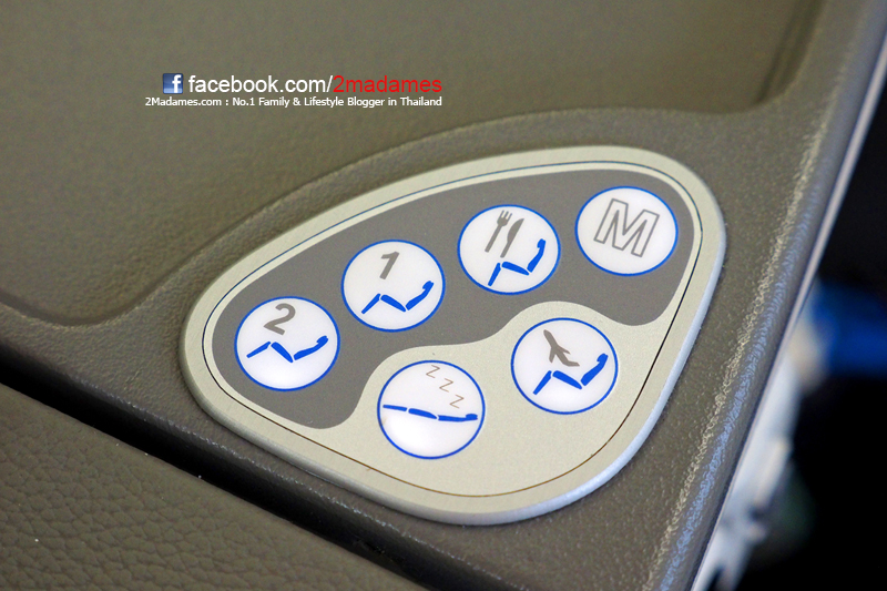 ปุ่มปรับเบาะมี 5 ระดับ ทั้งเวลาทานอาหาร, ตั้งตรงสุด, นั่งเอนเล็กน้อย, เวลา Take off หรือ Landing, และเวลานอน