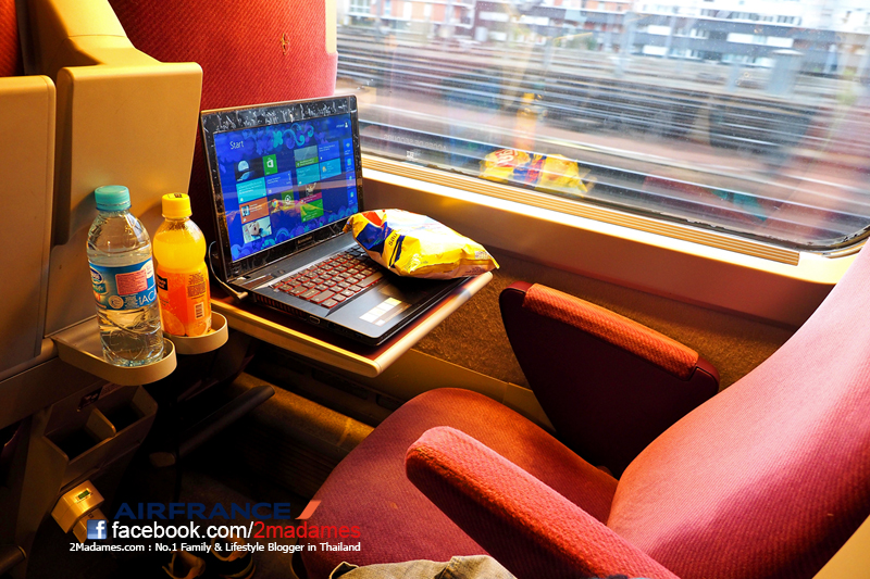 แถมที่นั่งมีโต๊ะวางของวางแก้ว และที่ปลื้มมากคือมีปลั๊กไฟให้ชาร์ตแบตมือถือ หรือคอมพิวเตอร์โน้ตบุ้คด้วย เยี่ยมจริงๆ