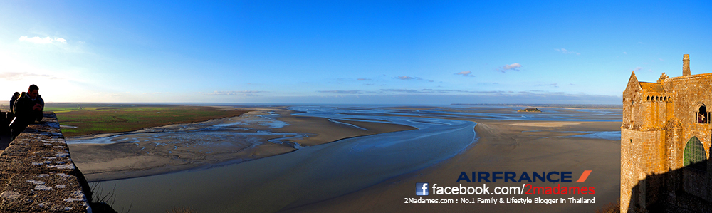 ที่จริงรอบๆมองแซงมิเชลจะล้อมรอบด้วยน้ำทะเลนะครับ เวลาน้ำขึ้นจะเต็มไปด้วยน้ำทะเล แต่เวลาน้ำลดก็จะกลายเป็นหาดทรายแบบนี้เลย