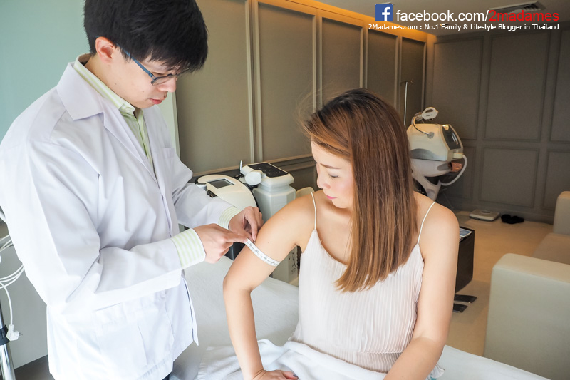 แล้วคุณหมอทำการจับเนื้อย้อยๆใต้ท้องแขนและวัดสัดส่วนแอนดู แล้วสรุปสั้นๆง่ายๆมาให้แอนตัดสินใจ 2 ตัวเลือก คือการใช้เครื่อง RF หรือ Radio Frequency เพื่อยกกระชับแต่อาจใช้เวลาหลายครั้งหน่อย หรือหากต้องการเห็นผลเร็วทันใจก็แนะนำเป็นการดูดไขมันเลย ซึ่งอันนี้เจ็บตัวแน่นอน