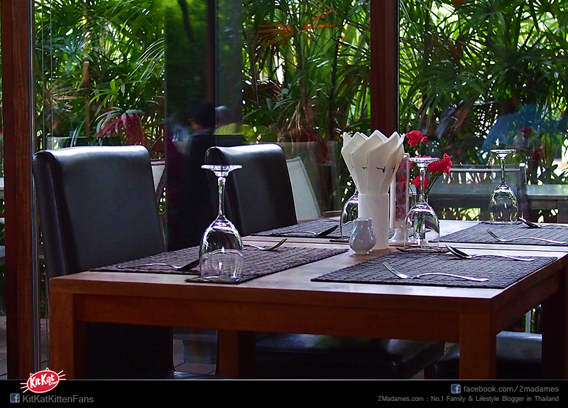 เนื่องจากแดดยังแรงอยู่ เลยไม่มีใครเลือกนั่งด้านนอกเลยค่ะ ก็เลยยังไม่มีการ Set โต๊ะค่ะ