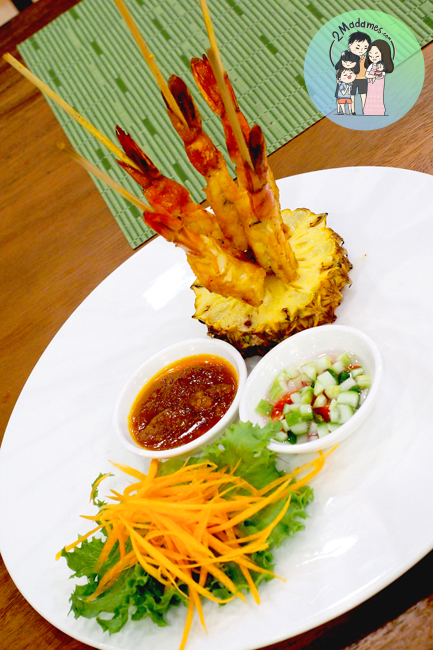 อาหารไทยเมนูอื่นๆก็รสชาติดี กุ้งสะเต๊ะนี่มีความหอมผงกะหรี่เบาๆทานเปล่าๆไม่จิ้มน้ำจิ้มก็โอเค ตัวกุ้งย่างมาไม่แห้งจนเกินไป ยิ่งทานกับน้ำจิ้มและอาจาดยิ้มเพิ่มรสชาติให้จัดจ้านเข้าไปอีก ราคา 190 บาท