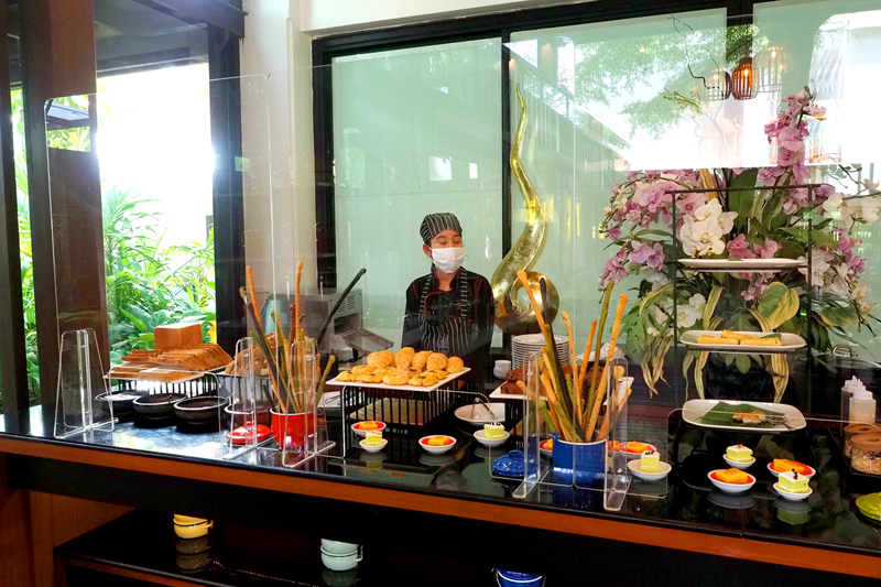 ในส่วนของอาหารเช้าช่วงที่ครอบครัวเราเดินทางเป็นช่วงหลังโควิดนะ โต๊ะเค้าก็จะจัดห่างๆตามมาตรการรัฐ