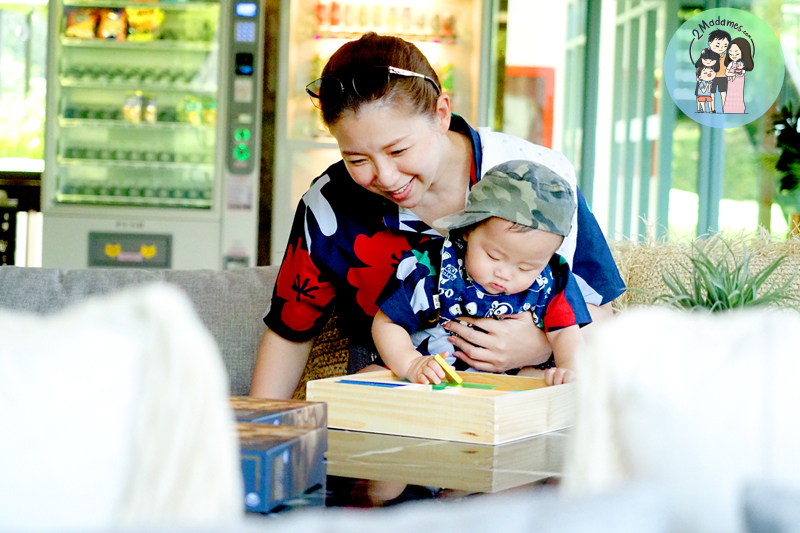 ส่วนเด็กเล็กอย่างน้องเกล็น ก็มีบล็อกไม้เสริมพัฒนาการ หรือสมุดระบายสีให้เพลิดเพลินกันไป