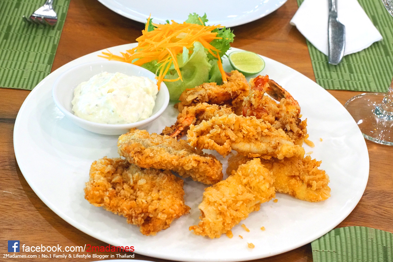 Phuket Seafood Combination ซีฟู้ดชุบขนมปังป่นทอด จานนี้พวกเราสั่งมาแชร์กันลงความเห็นว่าดี เพราะทั้งกุ้ง ปลาหมึกสดมาก เนื้อแน่นเด้งมาก ยิ่งรีบทานตอนร้อนๆกรอบๆ คือดีงามที่สุด ราคา 280 บาท