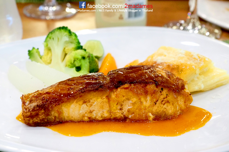 Salmon Steak ปลาแซลมอนย่างซอสส้ม แซลมอนชิ้นโตแต่ย่างสุดไปนิด เนื้อเลยแข็งไปหน่อย ส่วนซอสส้มดีเลยดันรสชาติได้ดีมาก จานนี้ราคา 480 บาท