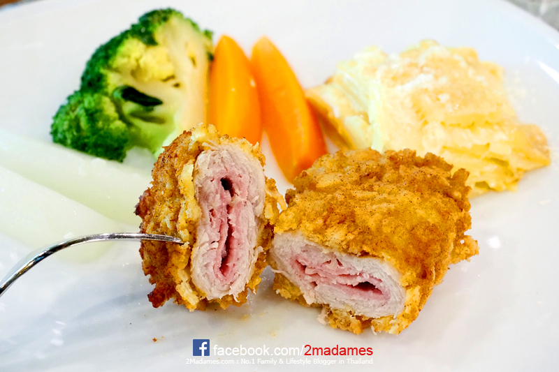 Pork Escalope Gordon Bleu ราคา 290 บาท เนื้อหมูนุ่มๆพันกับแฮมและชีส ชุบแป้งทอดกรอบๆเข้ากันมาก ไม่ต้องจิ้มซอสอะไรเพิ่มเลย