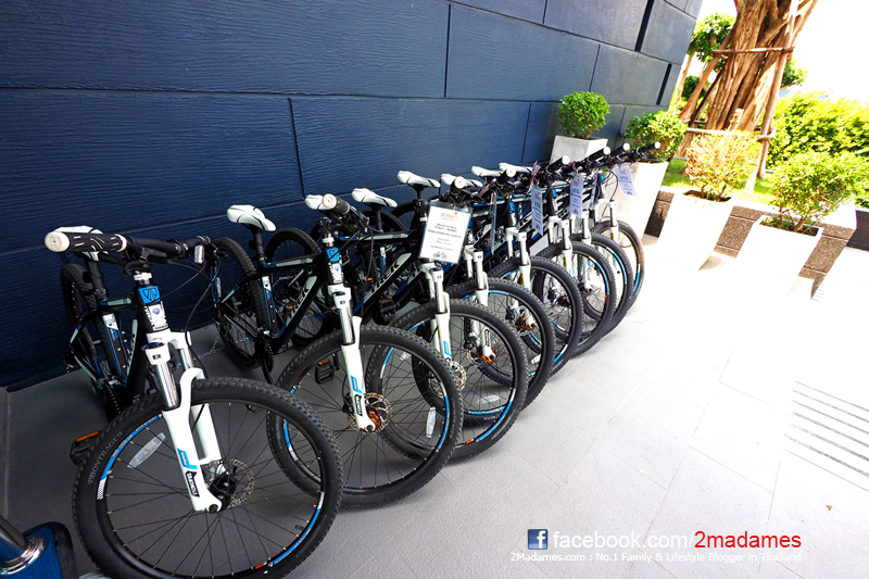 ด้านหน้าของโรงแรมมีบริการจักรยานให้เช่าปั่นเล่นกันด้วย