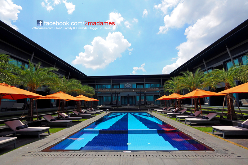 ส่วนที่เด่นที่สุดของโรงแรมนี้น่าจะเป็นสระว่ายน้ำตรงกลางครับ