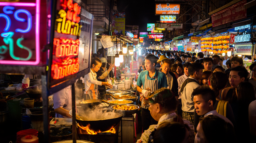แต่เป็นจังหวะของเสียงเพลง กลิ่นหอมของอาหารริมทาง และแสงนีออนระยิบระยับที่ดึงดูดใจ