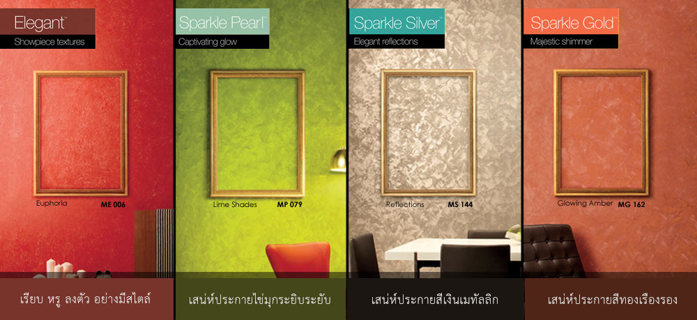 มาลองรุ่น Gold Frost กันบ้าง สีแบบนี้ไม่ต้องรองพื้นก่อนครับ สามารถทาสีทับได้เลย โดยเม็ดๆจะมาสร้าง Texture ให้กับผนังบ้าน