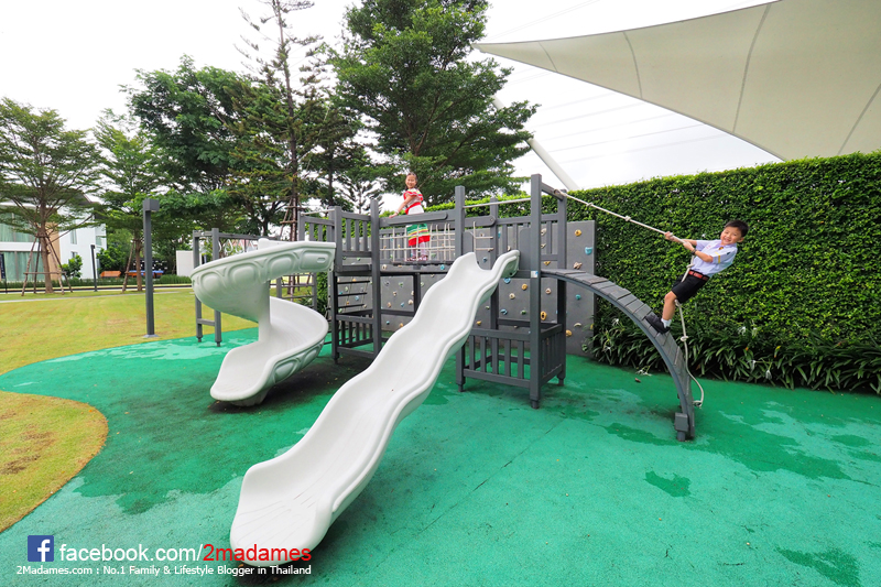 มีสวนเขียวกว้างๆ ให้นั่งเล่นกัน