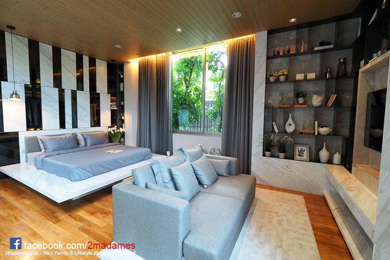 ขนาดที่ตั้งเตียง 6 ฟุตแล้วยังมีที่เหลือไว้สำหรับโซฟาจัดเป็นมุมพักผ่อนได้อีกโซนเลย