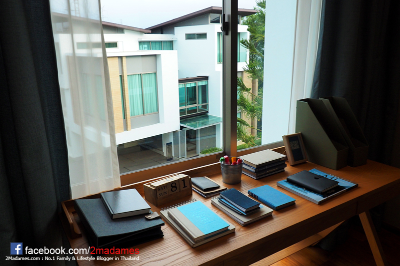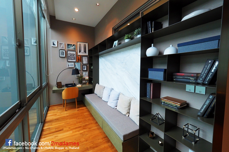 มุมอีกด้าน จะเป็นซอกที่จัดเป็นมุมหนังสือและโต๊ะทำงาน ซึ่งมีกระจกเปิดรับแสงธรรมชาติแบบเต็มๆ