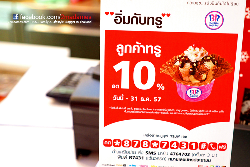 อิ่มแล้ว เหลือบมองเห็นป้าย อิ่มกับทรู ใครเป็นลูกค้าทรูได้ลดไป 10% ดีจังเลย