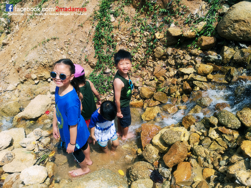 เด็กๆไม่ยอมลงไปในบ่อโคลน ก็ยืนเล่นธารน้ำอยู่ข้างๆ