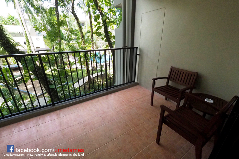 มีระเบียงวิวสระว่ายน้ำด้วยนะ จะออกมานั่งเล่น หรือจะไว้ตากชุดว่ายน้ำที่เล่นแล้วให้แห้งก็ได้