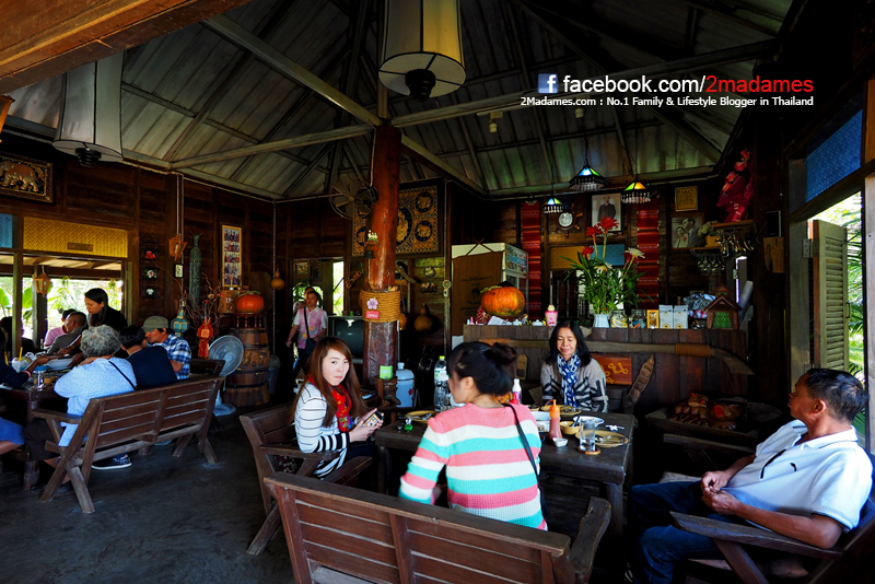 บรรยากาศภายในร้านเป็นบ้านไม้ 2 ชั้น