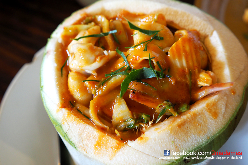ห่อหมกรวมมิตรมะพร้าวอ่อน เมนูนี้บอกเลยว่ารสชาติอาจไม่ถึงใจนัก แต่ก็กลมกล่อมดี เพราะได้ความหอมหวานของเนื้อมะพร้าวอ่อน ถือว่าผ่านครับ