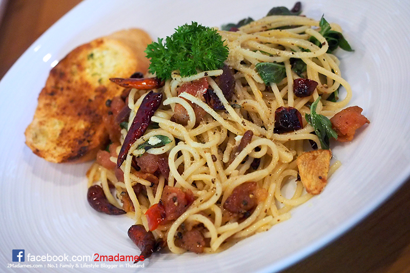 สปาเก็ตตี้ผัดพริกแห้ง 129 บาท รสชาติเข้มขนจัดจ้านมากใส่พริกแห้งมาอย่างเยอะ เผ็ดร้อนสุดๆ ใครทานเผ็ดไม่เก่งขอให้ผ่านเมนูนี้ไปนะ