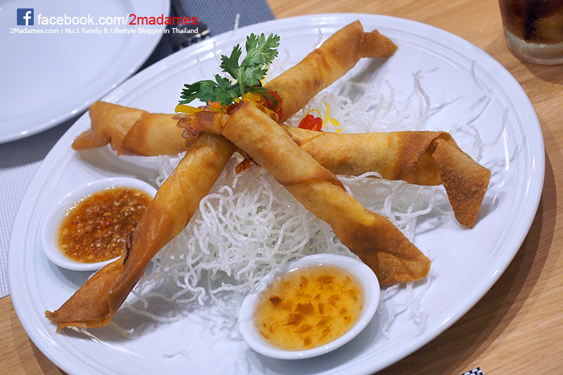 ต้องบอกว่าทานกันไปหลายเมนู ชอยกตัวอย่างให้ดูสักหน่อย พอเป็นน้ำจิ้มนะ จานแรกเป็นปอเปี๊ยะกุ้งสั่งมาเอาใจเด็กๆกันเลย ขอบอกว่ากุ้งสดมากๆ