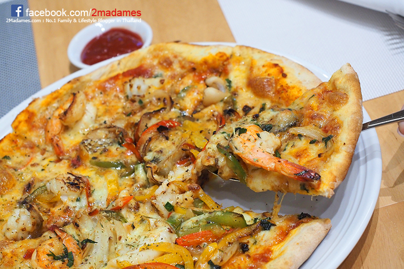 พิซซ่าซีฟู้ดส์เครื่องแน่นมากๆ อบมาหอมๆและและแป้งมีความบางพอดีๆ