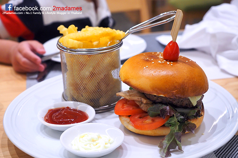 เบอร์เกอร์เนื้อ 220++ สามารถเลือกระดับความสุกและเลือกท็อปปิ้งได้ด้วยนะ เฟรนฟรายที่นี่ทอดอร่อยมากอีกด้วยนะ