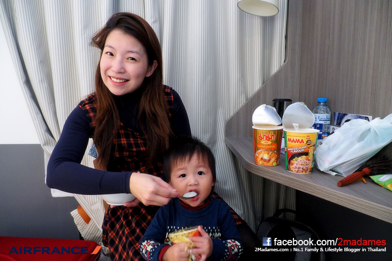 มื้อเช้าของครอบครัวเราเน้นสะดวกและประหยัดไว้ก่อน เพราะอาหารที่นี่ค่อนข้างจะแพง มาม่าแบบถ้วย โจ๊กคัพ เป็นตัวช่วยที่ดีมาก นอกจากจะประหยัดแล้ว ยังมีรสชาติเผ็ดๆแบบที่หาไม่ค่อยได้ที่ฝรั่งเศสด้วย