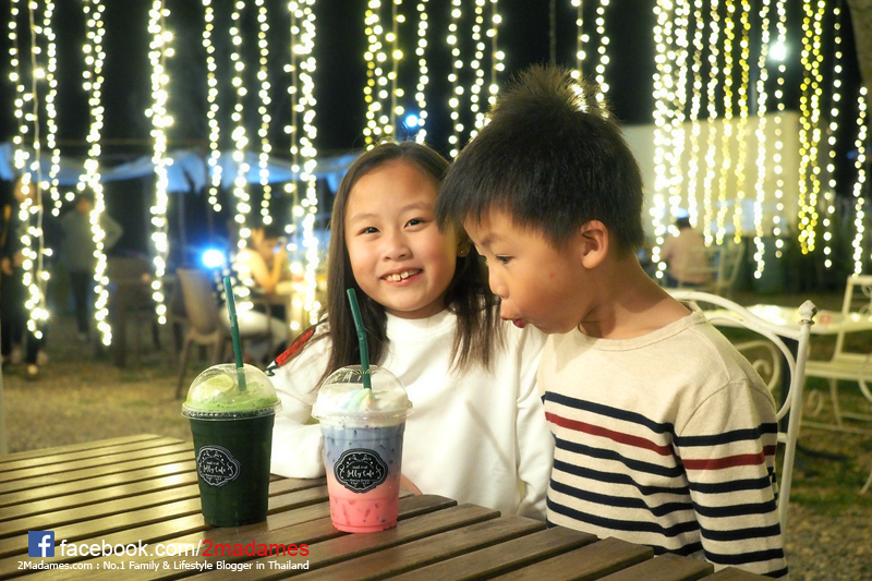 เครื่องดื่มที่นี่ก็ไม่ธรรมดาน่าดื่มเพียบ ราคาประมาณ 60-80 บาท อย่าง Little Pony’s Drink แก้วที่น้องกายจ้องอยู่นั้น เป็นนมแดงผสมนมอัญชัญสีสันหลอกล่อเด็กๆให้ดื่มนมได้ดีเชียว