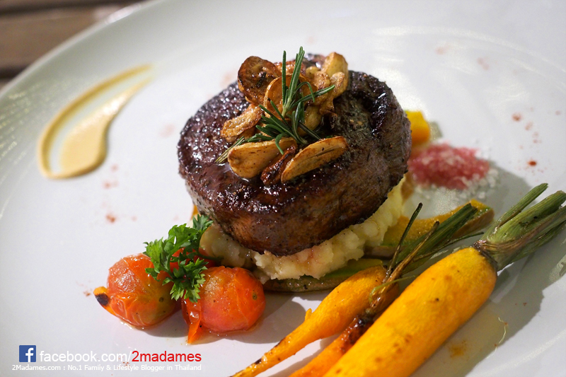 ส่วนทีเด็ดของร้านนี้ขอยกให้สเต็กเนื้อออสเตรเลียนวากิว ราคา 480 บาท ชิ้นเนื้อขนาดเล็กไปหน่อย แถมย่างมาได้แบบ medium ตามที่ขอ จัดวางมาบนมันบดเนื้อเนียนหอมเนย อร่อยจนต้องเบิ้ล 2 จานเลย