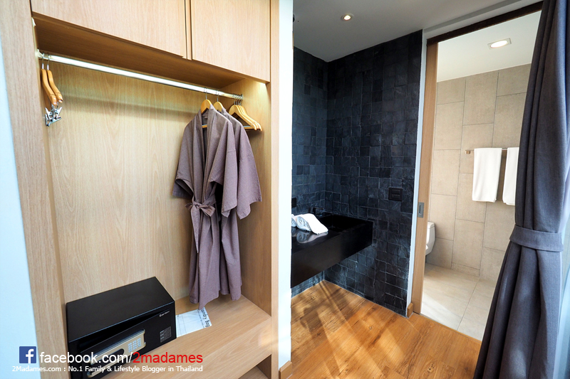 ส่วนเก็บเสื้อผ้าจะมีตู้เซฟและชุดคลุมอาบน้ำให้ ข้างๆกันเป็นอ่างล้างมือ