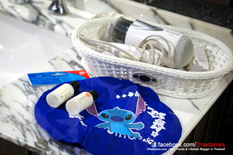 Amenities ไม่ธรรมดาครับ ใช้ของ Thann นะ ส่วนหมวกอาบน้ำไม่ใช่แบบใช้แล้วทิ้งนะ เป็นหมวกอาบน้ำอย่างดีลายการ์ตูน Stitch เลยทีเดียว