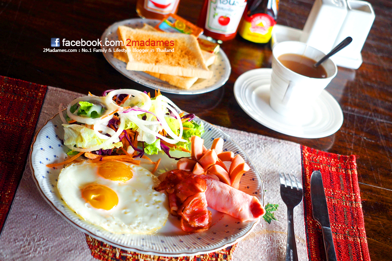อาหารเช้าเลือกได้ว่าจะเป็นแบบ American Breakfast หรือ ข้าวต้มหมูก็ได้