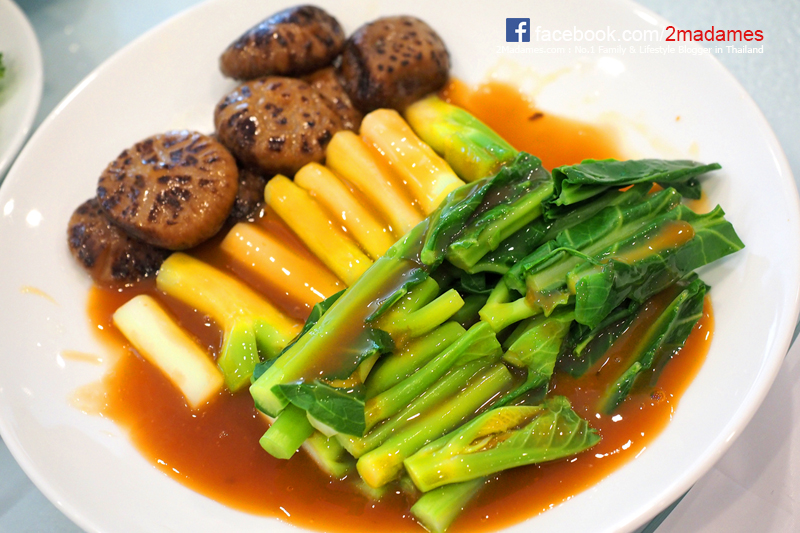 คะน้าเห็ดหอมผัดน้ำมันหอย (Braised Mushroom on Kale in Oyster Sauce) ราคา 350 บาท จานใหญ่พอดูเลย เคี้ยวก้านคะน้ากรุบกรับกันเพลินไปเลย
