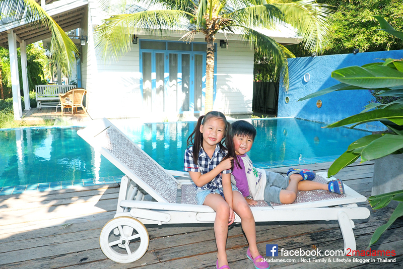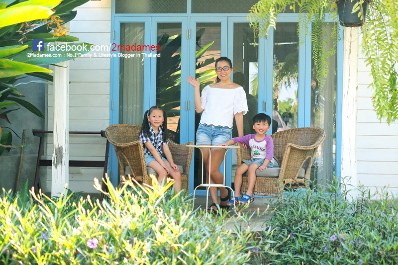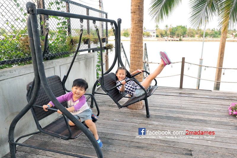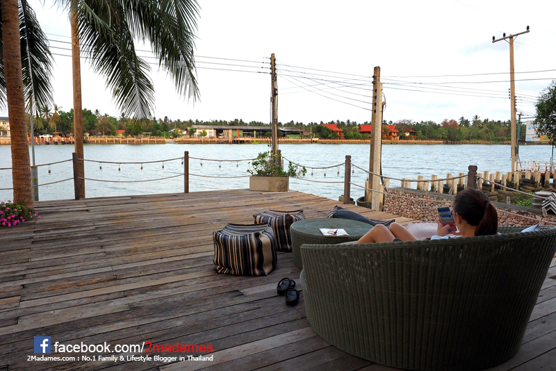 กลับมาที่ Pomelo แดดเริ่มร่มละ มานั่งเล่นกันที่ระเบียงริมแม่น้ำแม่กลอง คุณนายแอนก็นั่งเล่นมือถือไปบนที่นั่งสบายๆ