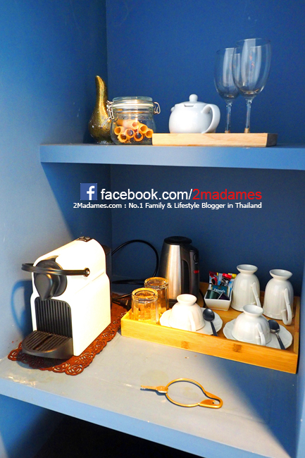 ห้องนี้มีเครื่องชงกาแฟด้วย มินิบาร์ในห้องทานได้ฟรีหมด ใจดีมากๆ