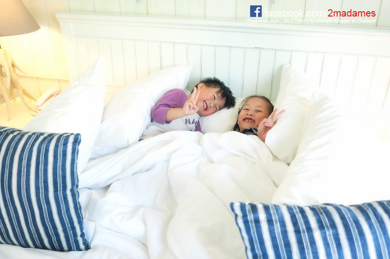 ห้องสวยได้ไม่นานหรอก เพราะเด็กๆก็ช่วยกันรื้อ และเปลี่ยนเตียงใหม่ให้กลายเป็นบ้านสมมุติ มีประตูหน้าต่างที่ทำจากหมอน เล่นกันกระหนุงกระหนิง เปลี่ยนวันสบายๆให้เป็นวันที่อบอุ่นของครอบครัวไปเลย