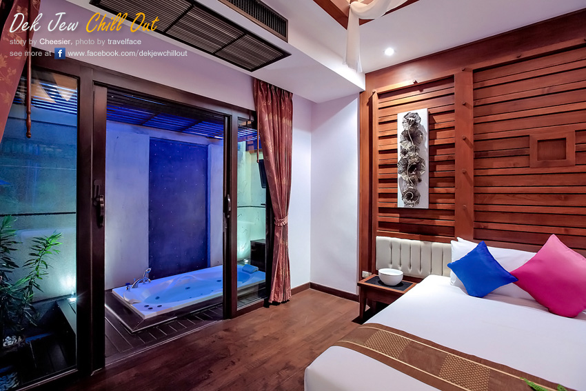 ห้องแบบ Jacuzzi Villa จะเป็นลักษณะนี้คือ เป็นบ้านหลังน้อย เป็นหลังๆ บางหลังจะมีสระบัวล้อมรอบ (มีปลาด้วย)