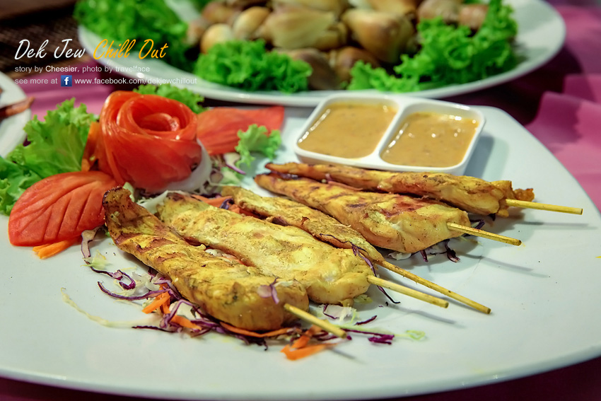 ปูนิ่มทอดกระเทียม และไก่สะเต๊ะ
