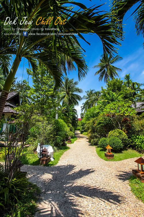 ลักษณะพื้นที่รีสอร์ทจะเป็นแบบแคบยาว คือเป็นแนวยาวๆ ลงไป ห้องพักก็เรียงรายสองฝั่ง