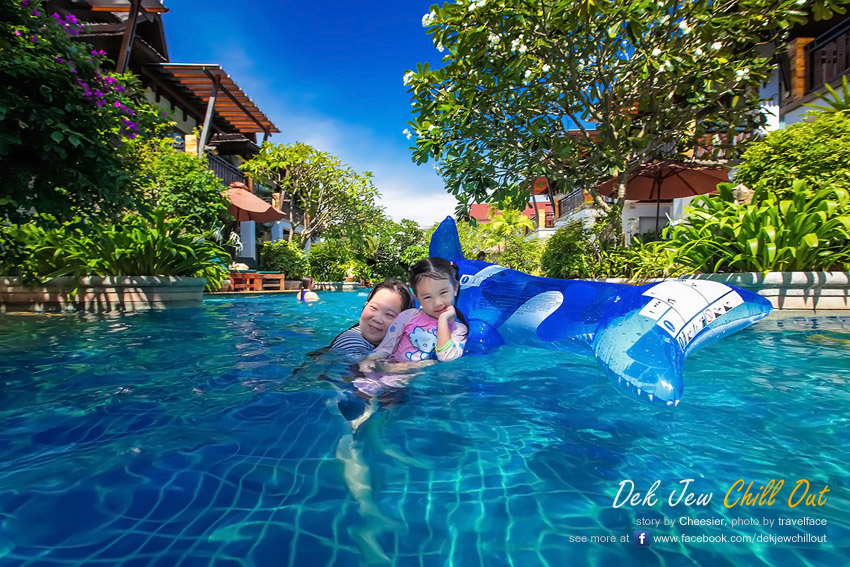 กลับมาถึงรีสอร์ท เด็กจิ๋วก็เล่นน้ำต่ออีก คราวนี้ย้ายมาเล่นสระด้านหลัง ซึ่งเป็นโซนของห้อง Pool View