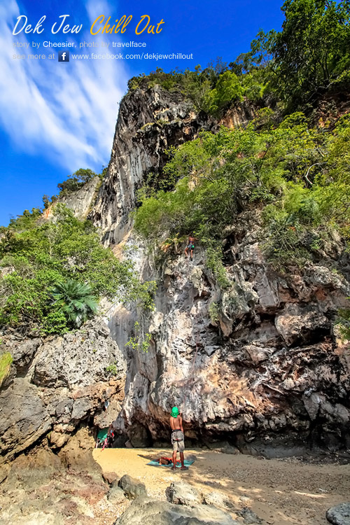 ที่หน้าผาถ้ำพระนางมีกิจกรรมปีนหน้าผากันด้วย เห็นเด็กฝรั่งตัวน้อยๆ ก็ปีนด้วย