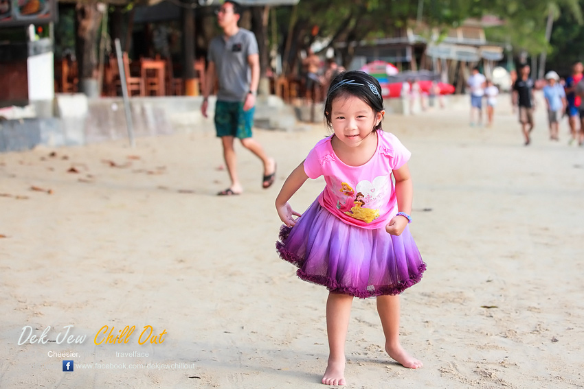 ตอนเย็นๆ เด็กจิ๋วมาวิ่งเล่นที่หน้าหาด ตรงหน้ารีสอร์ท คนเยอะคึกคักดี